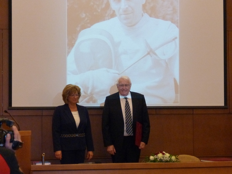 A köszöntőkből és élménybeszámolókból kitűnt, hogy nem mindennapi sportkarriert tudhat maga mögött a vívólegenda. A számtalan magyar egyéni és csapatbajnoki aranyérem mellett kard fegyvernemben 1966-ban Moszkvában először csapatban, majd 1970-ben Ankarában egyéniben is világbajnok lett. És akkor még nem beszéltünk az olimpiai érmekről. A legfényesebb minden bizonnyal az 1964-ben Tokióban egyéniben szerzett aranyérem, de szépen csillog azért a Mexikóvárosban és Münchenben szerzett bronzérem is. Miután szögre akasztotta aranyat érő kardját, sportvezetőnek állt. 1972 és 1985 között a Budapesti Honvéd vívószakosztályának vezetője volt. 1978 és 1982 között a kard válogatott szakág-vezetője. 1985-től 1989-ig Németországban dolgozott és tanított a kölni egyetemen is. 2005 óta a Budapesti Honvéd SE keretein belül vezeti a Pézsa Tibor Vívóakadémiát, amely az utánpótlással foglalkozik. 2014. október 1-jétől pedig a női karválogatott vezetőedzője. Pézsa Tibor kitűnő egészségi állapotnak örvend, így remélhetőleg még hosszú évek öregbíti a királyvárosunk hírnevét. A Szent Adalbert központban megrendezett ünnepség bensőséges, de egyben emelkedett hangulatban zajlott. És az, hogy a díszpolgári cím átadása az adventi időszakra esett még patetikusabbá tette az eseményt. A díjátadó ünnepség színvonalát tovább emelte az esztergomi Szent László Vívóegyesület látványos produkciója is. A rendezvény állófogadással ért véget.