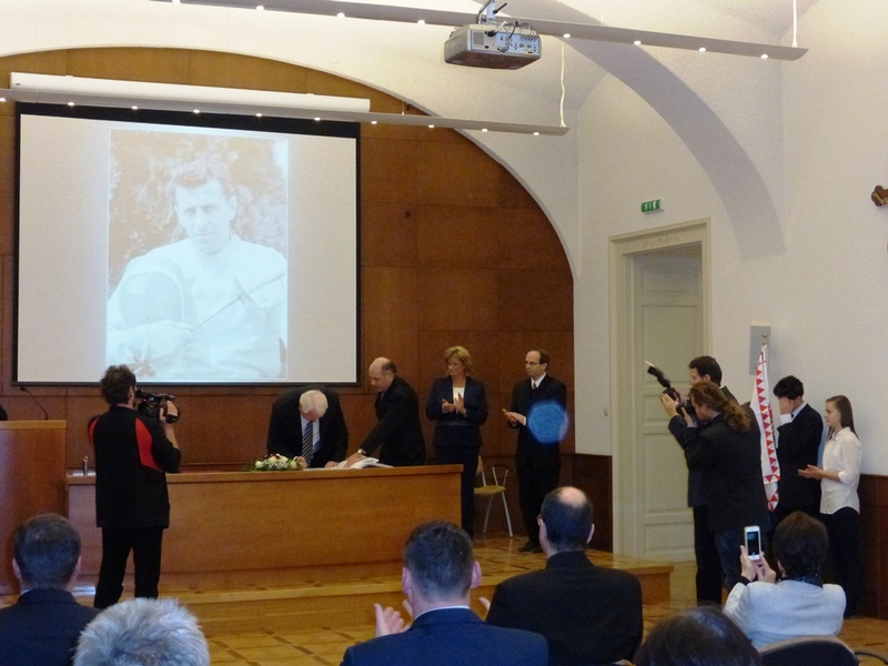 Pézsa Tibor megcsinálta. Esztergomban kezdte hosszúra nyúlt pályafutását, és tegnap Esztergomban végérvényesen a csúcsra ért. Esztergom Város Önkormányzatának döntése nyomán díszpolgár lett, díszpolgár, a királyváros díszpolgára. A nagyszabású átadási ünnepségen részt vett Popovics György a Komárom-Esztergom megyei Közgyűlés elnöke, Romanek Etelka Esztergom város polgármestere, dr. Székely János az Esztergom-Budapesti Főegyházmegye segédpüspöke, de megtisztelte jelenlétével az eseményt Polgár Pál a Magyar Vívószövetség Főtitkára is. Talán nem véletlen, hogy az esemény házigazdája az ünnepeltről elnevezett Sportcsarnok Igazgatója Pál György és Mészáros János a királyváros Vívóegyesületének elnöke, akik Erős Gáborral az esztergomi önkormányzat sportbizottságának elnökével maguk kezdeményezzék, hogy a vívólegenda legyen a királyváros következő díszpolgára.