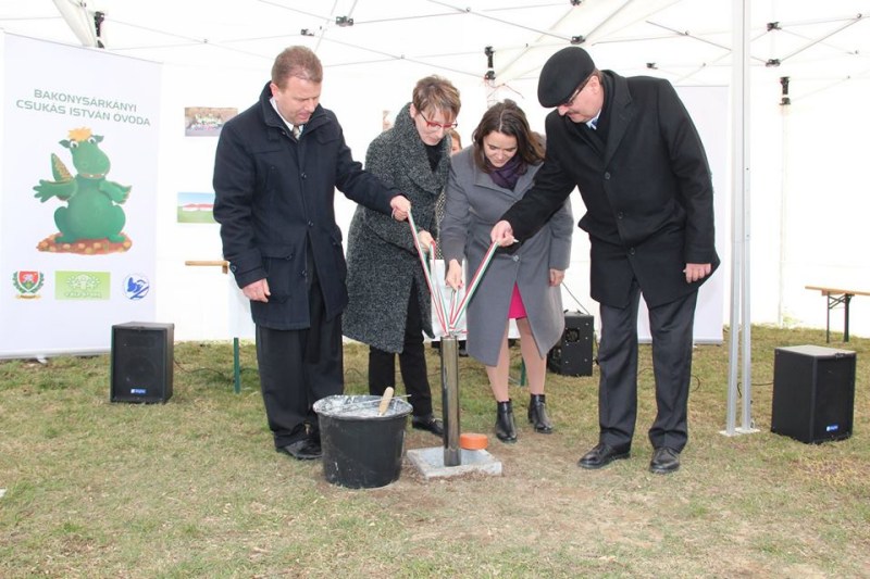 Popovics György az óvoda építésének helyszínén tartott köszöntőt, majd ünnepélyesen lerakták az óvoda alapkövét. |